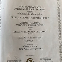The gallery was established as a platform for contemporary art jewelry in the heart of Vienna and showcases work by international artists. It has been owned by Veronika Schwarzinger since Verena Formanek left to join the MAK-Austrian Museum Applied Arts / Contemporary Art in Vienna. Galerie V&V represents more than fifty artists and mounts exhibitions that change approximately every six weeks. It is unique in Vienna in the wide range of work it shows with regard to techniques (which encompass installation, film, and multimedia pieces), materials, and approaches. Unique works are presented alongside editions and items manufactured industrially in small series. Artists featured come from across the globe, principally from Germany, Japan, The Netherlands, Norway, Switzerland, the U.K., and the U.S.A. The gallery continues to sell highlights in the field of contemporary art jewelry as Classics or Vintage.